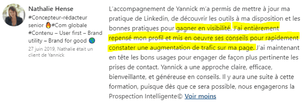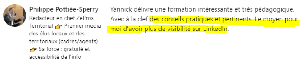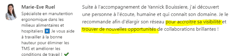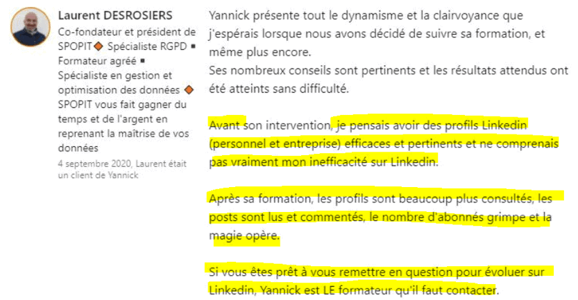 Si ça a fonctionné pour ceux qui l’appliquent, ne pensez-vous pas que ça peut vous permettre d’être plus visible sur LinkedIn™ ? De vous valoriser, de vous apporter plus de crédit et de vous permettre de gagner plus facilement et rapidement des clients ?
